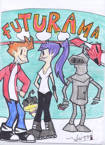 This is the first pic I have seriously drawn and coloured in quite sometime.Bender, Fry and Leela from one of my favorite shows, Futurama.