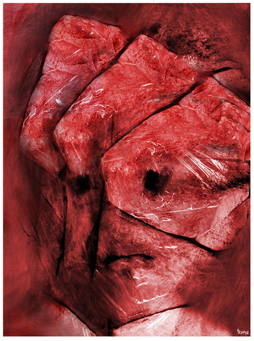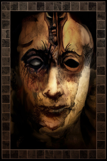 I like this, but I'm wondering if you've considered placing one sinister blue eye looking out of it. Some sort of contrast and a stark reminder of humanity. Or some sort of something like that.