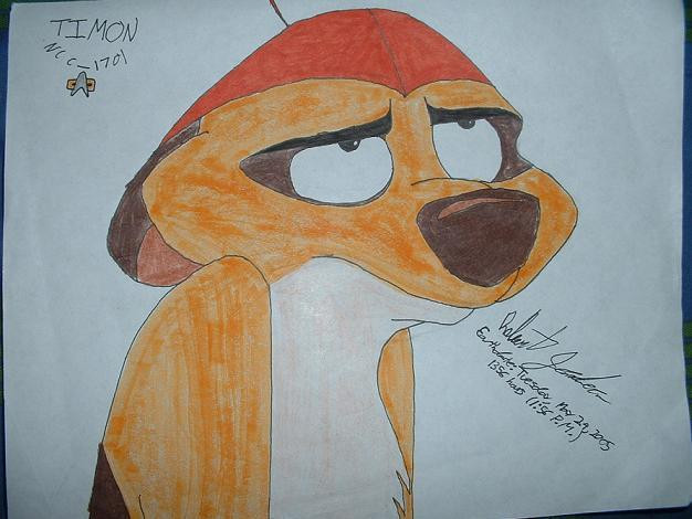 "I can't help it. It's my nature." X-)My first drawing of Timon in years! Have you seen the Lion King show on stage? It is most awesome. ^_^ I kinda got re-obsessed with Timon (just like in elementary school) after seeing it...I'll never be free as long as I live! (but that's ok. X-))