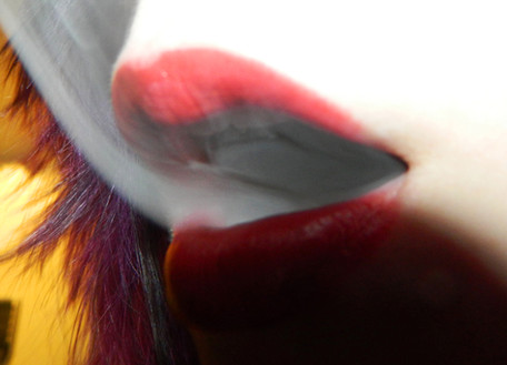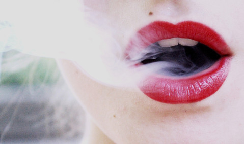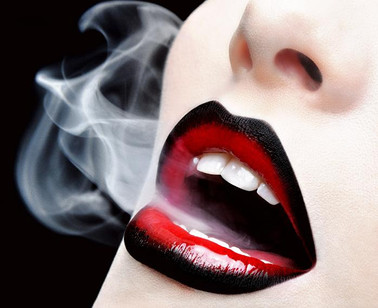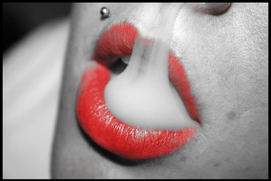love the contrast of the red lips and the smoke..