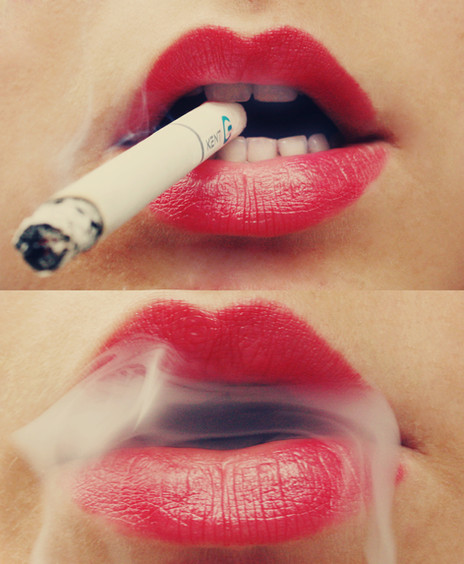 And I heard someone trying to argue that smoking isn't sexy anymore... Just look at this stunner! Smoke + luscious red lips = increased heart rate. Very, very well done.