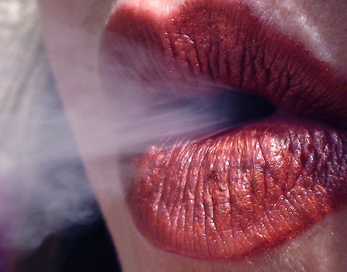 Very unique, the smoke softens the image making it more feminine than the lipstick could manage alone.