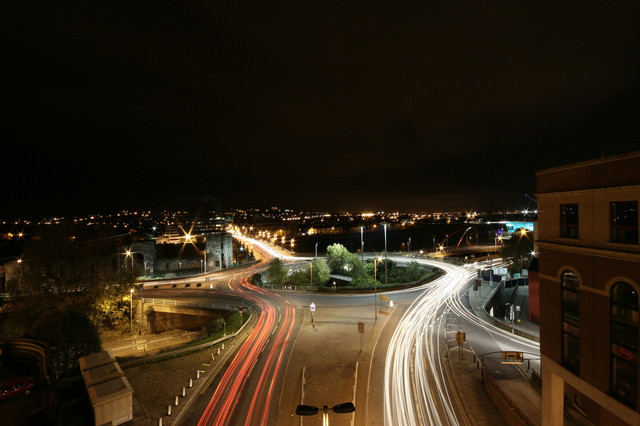 Shot from 'the road to no-where' that sits above the m8 in glasgow. Overlooking Charing Cross.A daunting peice of road to drive on, a brilliant peice of road to photograph.