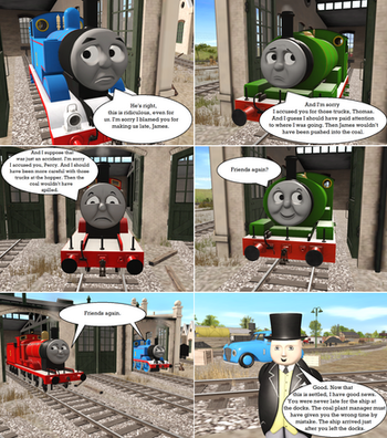 Thomas wanted to help out at the cunstiuction, but he got rejected. He felt lonely, then he met two new friends. Together they wanted to find a lost ship, witch was found by Thomas.