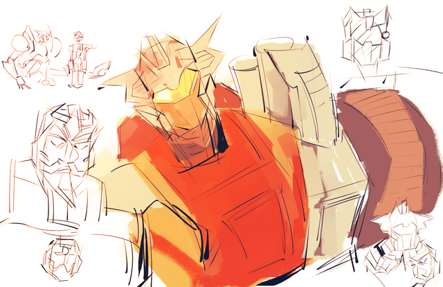 He is a very big boy, nearly twice Technis' height in standard mode. (Technis is about a head and a half shorter than IDW Ultra Magnus for reference. She is v tall). Usually, I draw him as just barely shorter than Astrotrain and the other losers. His alt is truck, but with attachments for a carrier trailer and a hold for spare energon for long trips. He can carry at least 2 average sized jets on the bed (hence why he's so big). Physically, he's strong with a lot of endurance and can spend days at a time driving.