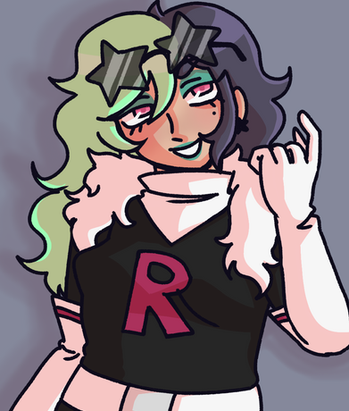 hmm... i imagine his ego goes to his head a lot more, and he takes great pride in his work.. he's a little careless with it and tends to upset silver with his unconventional plans, but he gets the job done (albeit messily). despite only being a favorite grunt and not yet an admin, he feels he has more authority over his peers and usually takes charge of any missions to show others up. since he is a pretty righteous character in pokespe, im sure he struggles a lot to put his inner-voice to the side when he's doing some questionable rocket things, but ultimately counsels himself through with silver and yellow... also, his favorite place to hang out is probably the game corner ^w^!