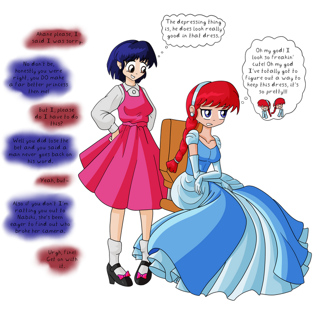 Heh, nice pic! Always got a feeling that Ranma occasionally, only very occasionally liked being a girl. Lol.