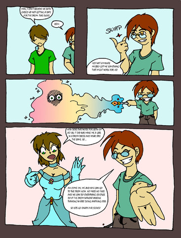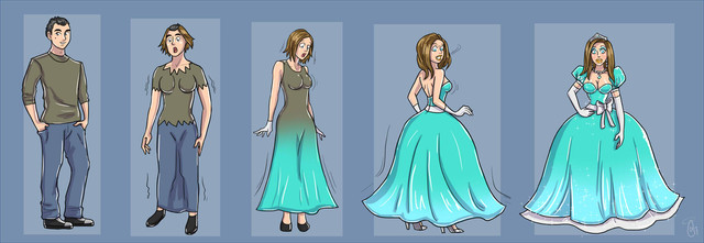"I'm too lazy to learn how to make a suit, so I'll just turn you into a woman and just make a dress for you"