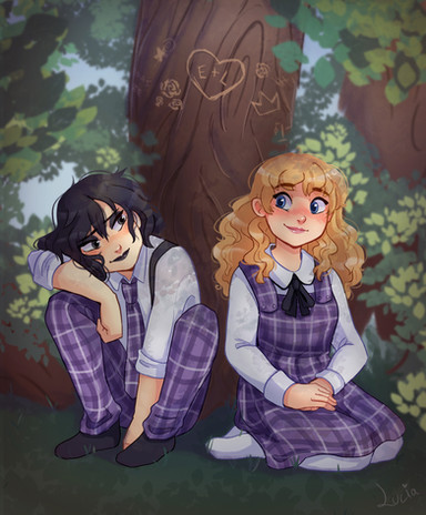 When they're still 12 and Annabeth is taller than Percy. Also, it was raining when I drew this.Related content