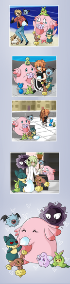 So and I have Pokemon trainers, and Julian (red) isn't much of an outdoorsman. We figured they'd meet one day while Melanie (pink) is cooking, and she'd develop real, genuine concern for him lolI think this is the first time I've shown Melanie's team too?? And I basically just made her a Normal type specialist. Eventually I'll draw her with her own Ursaluna because she's basically a self-insert. Also! This has been in my wip folder forever too! Two down. B)