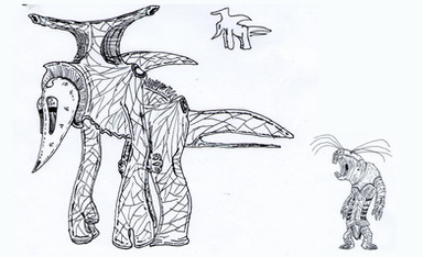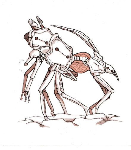 (Right) Gotorn: The Gotorn are an enigmatic race of virtual and mechanical beings who claim to have arisen on the super earth world of Thamek. The entire home system, today, is a bustling megammetropolis of interconnected city worlds. At first glance, the Gotorn seem to be a completely mechanical species, and this is true. However, the Gotorn themselves have revealed that they were once wholly biological beings. The circumstances which lead to the modern Gotorn form is something of a mystery. Even Gotorn historians and scholars face great disagreements among themselves over the origins of their modern mechanical heritage. Apparently, whatever the cause of the transformation, it involved a kind of memetic extinction, in which large portions of collective Gotorn memory were erased from their psych. One can only speculate on what the original Gotorn were really like. The standard modern Gotorn is composed of several body-balls, or "boballs", held together through magnetism. There is always a central boball, which the individual Gotorn keeps all their memetic life. The other boballs come in many sizes and functions, and can be traded or recycled with others as the need arises. Gotorn culture is highly organized and structured around mathematical and artistic expressions of individual or temporary group minds. Individuals do not die, but are recycled into the collective subconscious of the Gotorn race, which they are inevitably attracted to.