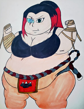 Look like Min Min ate a little too much noodles. oh well, at least now she can wear that dragon themed mawashi she had for some reasonΒa suggestion from