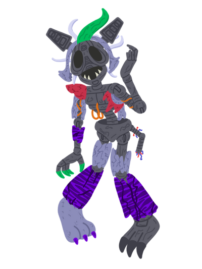 Yikes... Um... So safe to say it's gonna be Five Nights at Roxy's from now on, if Ruin is anything to go by. Anyway, Roxy, again, but this time very much broken. As in, jumped in front of a moving vehicle for no logical reason broken. And just for good measure, some absolute savage has gone and taken her eyes out. I'm not sure which is worse really. Quite ironically, she's perhaps the most functional of the Glamrocks come Ruin. She might be blind, but she's the only one who retains the ability to talk, let alone possess any sort of intelligence beyond "eat" or "kill."
