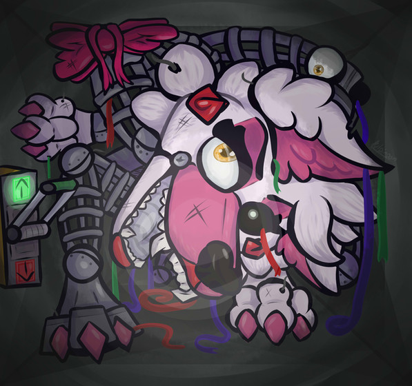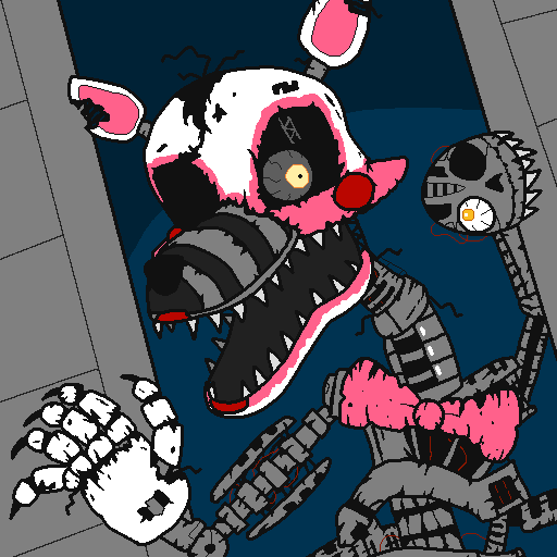 Whenever it encountered an unfortunate member of staff, it would toy with them, refusing to kill them but tormenting them with its mere existence. It would spare them, but in exchange it had them perform certain deeds. Usually, these deeds would involve the acquisition of certain components, or in some cases the requisitioning of a maintenance bay to perform unofficial upgrades. Through this process, the Mangle has acquired several upgrades from components made decades after it. It has acquired a new eye, allowing it to see through walls. It has also acquired a new voice box, which it has integrated with its now one-of-a-kind government database system, allowing it to mimic the voice of anyone it can get a voice sample of. Since the Pizzaplex's destruction, it has made a habit of toying with the occasional intruder, mimicking the voice of a known associate or friend. This has caused the ruins to gain a haunted reputation, for nobody has ever dared to investigate the source of the voices, and thus nobody has even seen the Mangle since the collapse.
