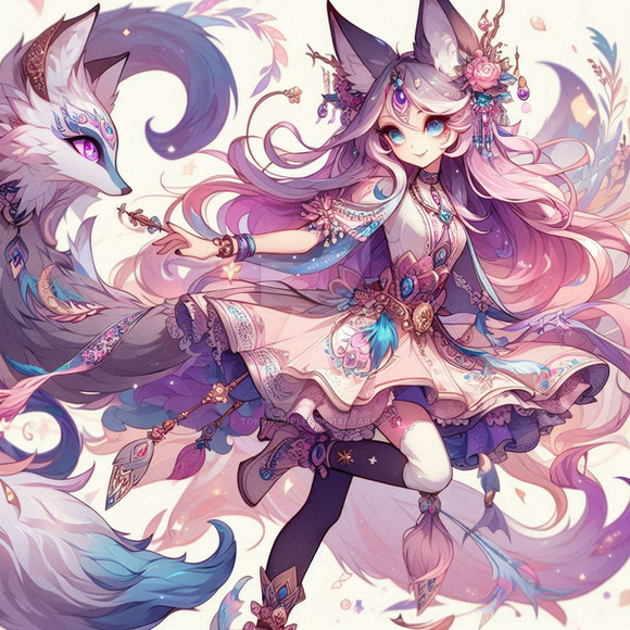 #anime #fanart #videogamefanart #ai #dreamup #digitalart #animegirl #kitsune #originalcharacter #wallpaper #characterdesign