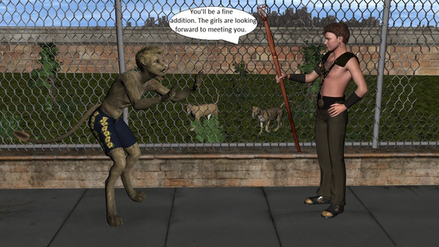 A wizard has been spending his time collecting animals for his zoo. He wants a representation of every species. However, he doesn't want to abduct animals from their native environments so instead he transforms people to fill the roles. Here he has just transformed a young man into a lion after a dispute over who was next to get a hair cut. The young man was so concerned about his mane of hair that the wizard decided to give him a proper mane.Related content