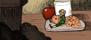“Oi, Dumplin’, c’mere,” he said, waving her over. She rose to her feet, stopped, and bent back down to retrieve the piece of bread she’d dropped after Farris’s bellowing, and made her way down the table towards him. She stood next to his mug, looking up at him expectantly as she munched on her bread. He leaned onto one elbow so he was closer to her eye level and he held up the small pebble in his hand to her with a smirk. He tilted his head towards the pewter mug on the chair. “Think ya can make that?”“Huh?” Nenani asked, bewildered at the question.