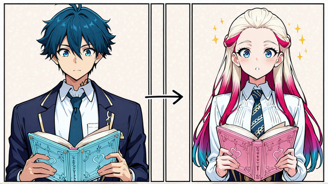 #anime #fanart #characterdesign #magic #body #cartoon #change #comic #genderbender #mtf #sexchange #swap #tf #tg #transformation #m2f #maletofemale #tgtftransformation #aigeneratedart
