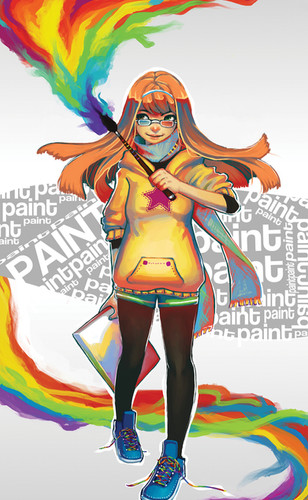 Bring color to this dreary world!After checking out the splatter-fest videos on the Adidas contest page (which looked pretty awesome), I wanted to go for something that incorporated the elements found in those videos. I wanted something fun, dynamic, evoking lots of energy and of course something with lots of paints and colors. Adidas is a brand known for its athletic gear so, after much thought, I settled on the idea of an athletic girl in Adidas garb running down a dreary corridor bringing color, fun, and excitement with her in the celebratory spirit found in the Adidas finger painting clips.