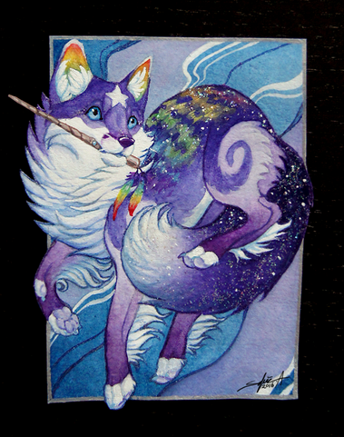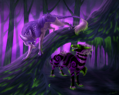 Commission for purefiresoul of her northern alavhaun character Zemlja.I love painting the environment these creatures live in, it is similar to the one in Avatar but I left out the glowy plants that usually grows everywhere because I thought it would get too crowded in the picture and take too much focus from the character.