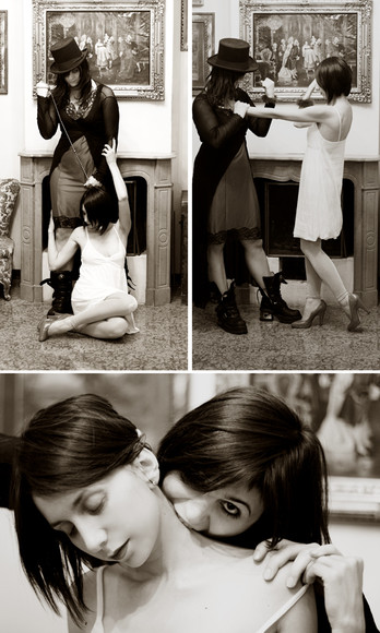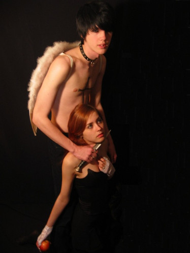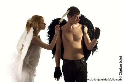 The angel/devil concept is always nice and you made it very well. The light is very interesting. It looks as if the angel is posing for a portrait or something like that and the devil gets jeolous, since she doesn't get all the attention and desides she has to kill the angel. Hm.