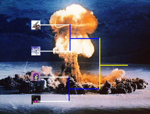 Immediately, everyone on deck strapped themselves in for the worst. Tycho took a hold of the steering apparatus and dodged left. The missile swerved left as well. He dodged right. The missile followed. Tycho smashed the flares button, the missile swerved out of control, and exploded harmlessly. "YA MON! DAT'S HOW IT WORKS!" He looked in the rear view camera to find a giant laser pointing at his engines. "Oh... no, mon..." Running was futile. Seconds later, the administrator screamed as the Atlas-01 was shot down and plummeted to the thick forest below.