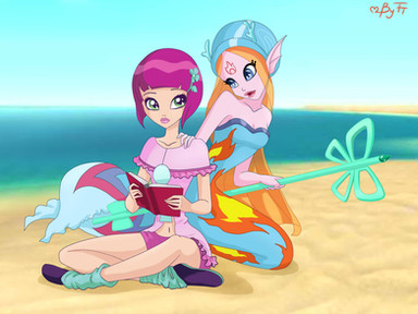 Как-то раз я решила нарисовать что было бы, если бы из-за действия злого заклинания пикси и винкс поменялись местами. Здесь изображена сцена, где они собрались в кафе, чтобы обсудить случившееся и найти возможные решения. Диджит и Текна как раз гуглят)))Related content