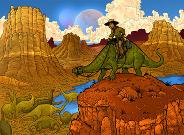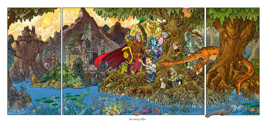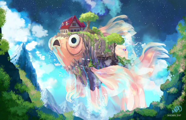 One of my most favorite of your images. I don't know WHY it resonates with me so well, it may be the depth of the overall scene, the fact that I love swirly clouds, or just the fact that the kid's riding the whale like a boss... but this one makes me smile every time I see it.