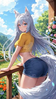 #animalears #butt #curvy #details #dfc #flat #fluffy #fox #foxgirl #foxtail #image #kitsune #kitsunegirl #legs #shorts #thighs #widehips #thicc