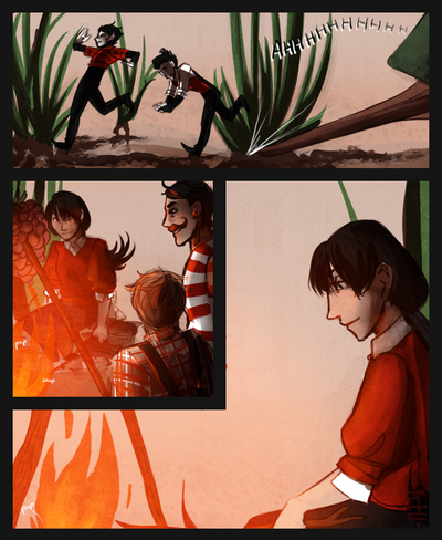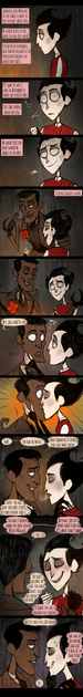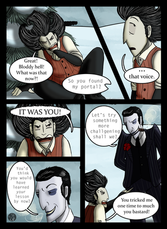 Part one of a comic requested by my girlfriend, who wanted to see shadow king Maxwell discover a survivor Charlie stranded in the snow.Maxwell and Charlie of Klei Entertainment's Don't Starve.
