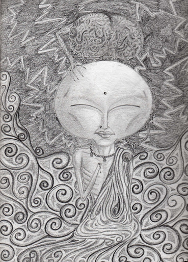 this piece is also really great detailed..love it! the symbol above the head of the meditater(ess) is really nicely done. focused thoughts in a steady rythem...wow!
