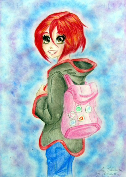 Drawn by hand, then scanned and coloured in photoshop.
