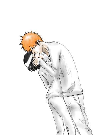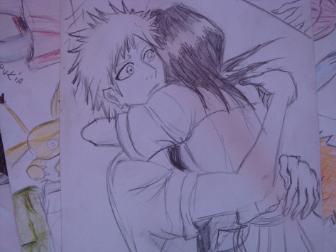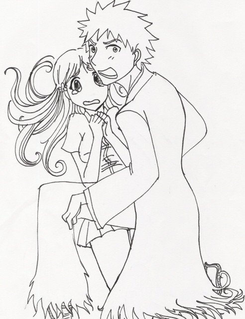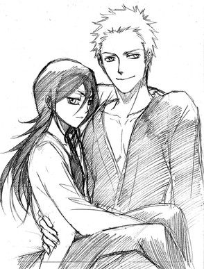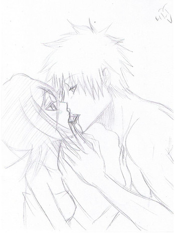 I really like drawing pictures where the guy is carrying the girl. I've just noticed this, but it's really fun. Maybe it's because I don't have to worry about legs so much. They're easier to draw when they are actually doing something, instead of just being stood upon.I like this picture....Rukia was trying to tease Ichigo by putting her legs on his shoulders when she was sitting on a countertop in front of him standing, but then he picked her up off the countertop and brought her closer...now he's teasing her...