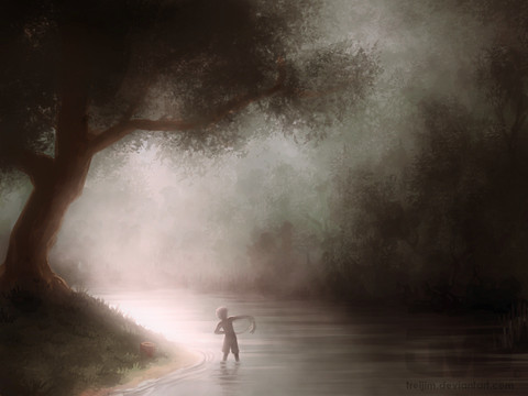 Whoa. Once again, you astound. I love the lighting and dramatic view in this. Simply gorgeous. The Sunbeams filtering through the trees is a beautiful touch.