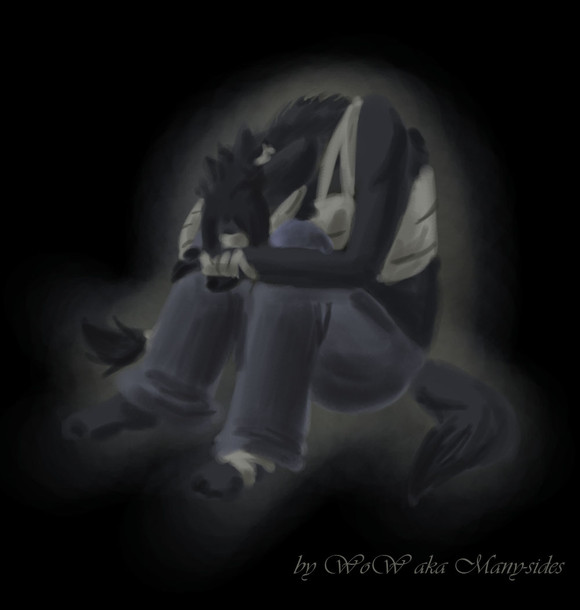 Well, anyway, I think Ben said it best. We was lookin' at it the other day, and he goes "It almost looks like a fetal position". I had been looking at it earlier and I was thinking it reminded me of something, and it really clicked then. I should started drinking coffee or something like him. But yeah, I was really drawn to his feet and tail, I love how you did his fur, in sort of chunks of fur and all. His feet look so much like big-puppy-dog sorta pads, so cute and scary at the same time I think that's one of the best of Nari's features, his feet. You should put more of 'em in pictures.
