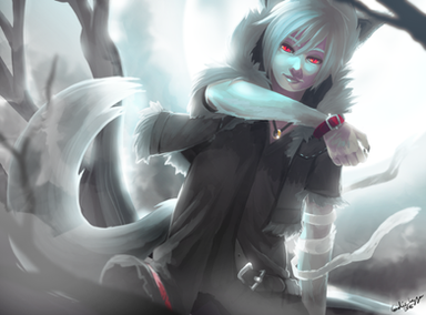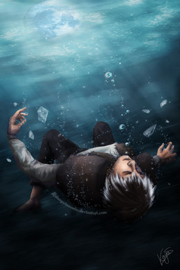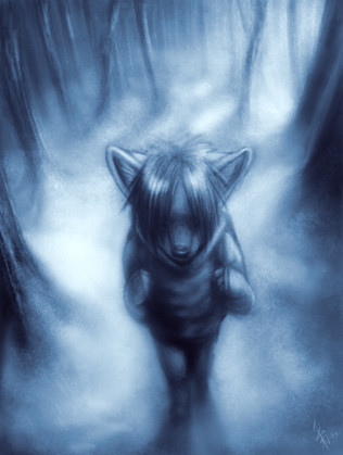His face bothers me, maybe his eyes are too close together? I know now, but it seems different from the rest of him. I like the swirly strand of light flowing in and out of the picture, kind of reminds me of a mystical snail-trail, a shiny, radio-active like one, that is. The picture is very cool, and calming. It gives the onlooker a peaceful feeling, yet when you study Nari's expression it sort of changes everything around, instead of peaceful, it's sadistic.