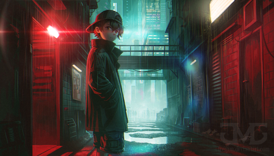 #anime #digitalart #scifi #military #animedrawing #boots #boy #cyberpunk #digitalpainting #dystopian #gun #industrial #neon #robbie #scarf #shorts #smoke #backwardscap