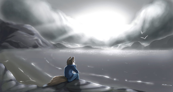 This is NOT a photo, or a photo manipulation, or a 3d digital rendering. It is completely digitally airbrushed. Done completely with a mouse.Why do my werewolves always stare at lights?