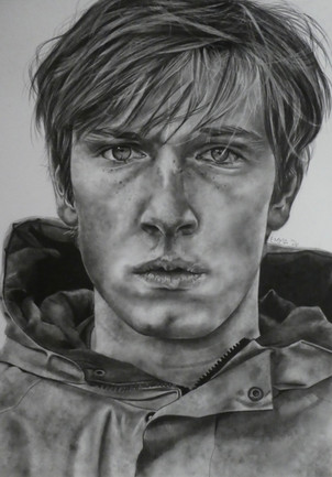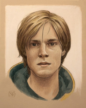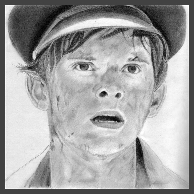 I used a movie still from Bridge to Terabithia (actor is Josh Hutcherson, playing the role of Jesse) to draw this.
