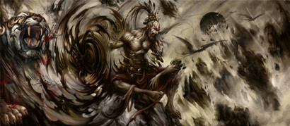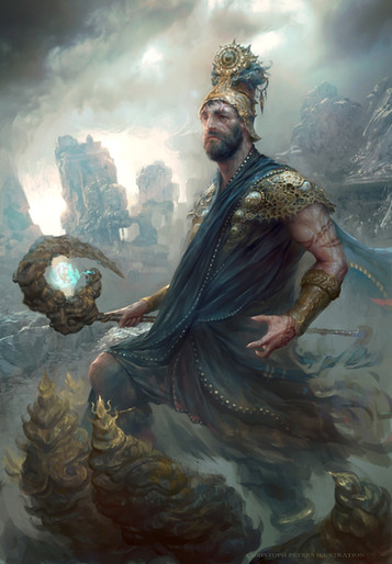 The details on this are simply amazing. An interesting interpretation of Ra, this time more as a warrior and fighter than a king. It might only come off that way, but could it be that the ornament behind his back doesnΒ΄t aling with his back? Maybe it follows the axis of his head instead, thatΒ΄s possible as well. A very energetic and badass picture!
