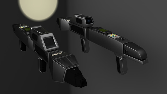 The original version. It only appeared once during the enitre three seasons of the original show, but had a very dramatic use during the single episode. It looks extremely cheesy, but 40 years ago it was probably the coolest weapon people had seen on a sci-fi show.First render I've ever used Global Illumination, was damn annoying working it in with the raytracing for the glass tubes.
