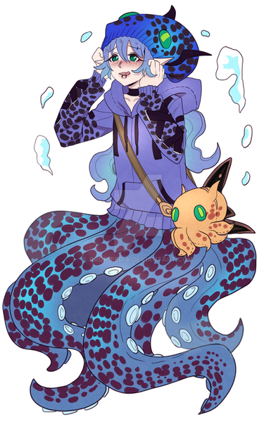 A splatoon OC who is a Jellyfish/ anemone character.He is a prince and water dancer in his village, traveling all over the place to dance for millions of inklings. He is always fascinated with foreign things and will try to avoid his guards to meet others, like his boyfriend.