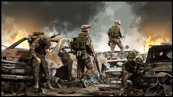 Amazing scene. I love all the details, like the small writings in the soldier's glasses, or the avatar of your profile on his sleeve. Quite an original signature, come to think of it.