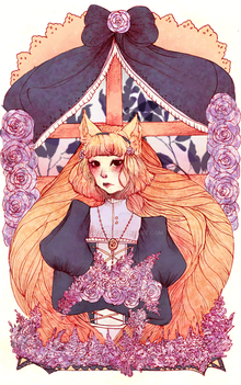 I like that you combined more simple shapes with your fluid lineart. (The ink work is really amazing!) I think the idea that you had with the color scheme is also a strength of this piece, but I'd say that it falls a bit short when you get to the candles. Instead of following the blue, cold color scheme, I'd suggest you to follow the color scheme you introduce inside of the circular "halo". Your art has a two dimensional style, but I think that if you'd add some shading to the roses in a similar dark color as in the "halo", you could then paint the candle flames with a similar warm, yellow, color as in the "halo". This would emphasize the flame more, and make it more visible. Otherwise, I think this is a really nice piece! Your art shows that you have a lot of skill and practice. Your line work actually inspires me with my own art e.deviantart.net/emoticons/s/s⦠" width="15" height="15" alt="