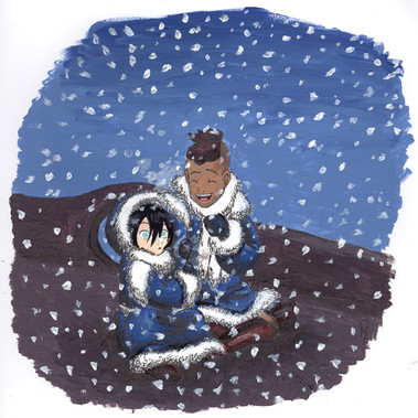 I guess I'll just stick this old sketch here. ^_^It's Korra making shapes on the snow with her firebending.