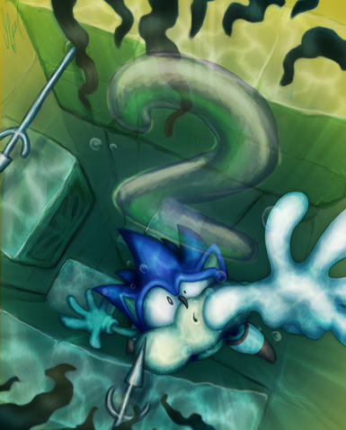 This is great! I love the stress and anxiety in Sonic's face. The lighting is really nice, as it the detail on the bricks