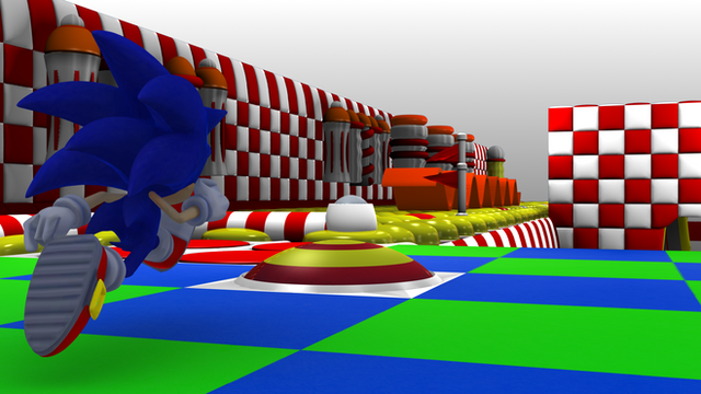 .... 3D background.... cartoon Sonic? o-o