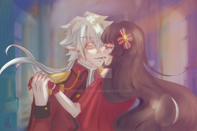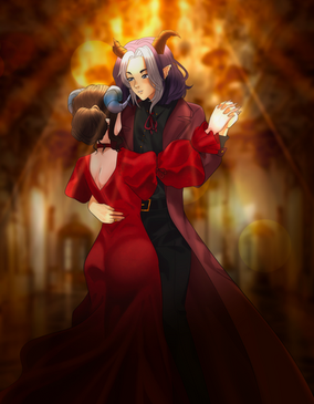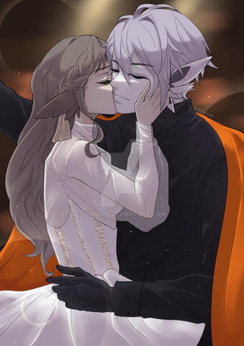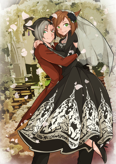 They got married in a game that I play called Final Fantasy XIV, I sadly missed the wedding since I was away for an irl wedding but wanted to give them something. They loved it thankfully I will say it was kind of difficult to draw them with the lack of proper references I had but you know, it's something The background however was just a screenshot from the game itself that's been blurred cuz again, it was rushed haha.