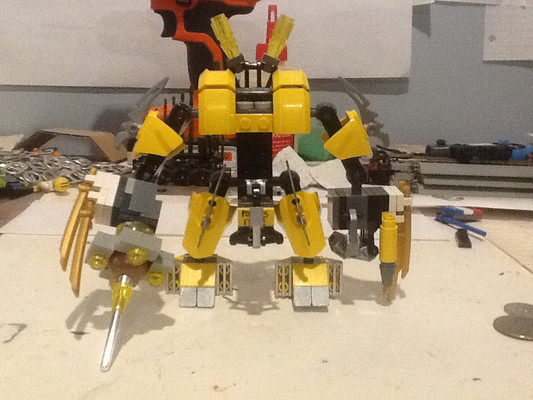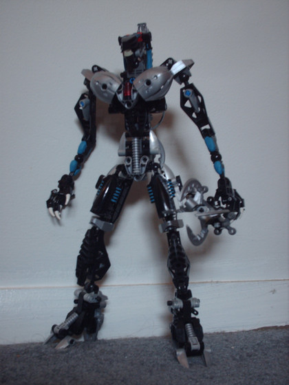 Here we have Kopaka, redesigned/MOC's. ive removed the gimmicks, brain stock and gearbox, and also removed the translucent pieces and golden pieces as well, and added silver and grey parts from various sets, such as chi Razar, Worriz, and even a chain from a breakout Hero Factory set.I didn't intend to make him look like one of his older incarnations, but with the silver in the center, it seems to encroach on that a little. There could be a story involved, where Kopaka has recently escaped a prison/gladiatorial arena, and now is on the run, while fighting them off. Not sure if it would be in character or not, as I don't follow the lore, all that much, im just in it for making my own stuff