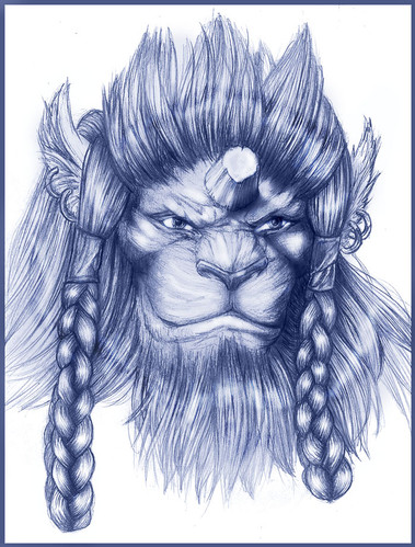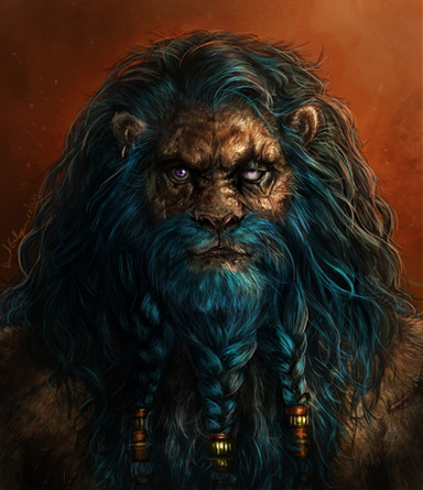 So the image turned out like this since he's playing a White Lion in Warhammer but "a druid at heart", so he asked me to make a White Lion-esque lion with a Mark of Cenarius to display that he's still attached to his Druid which is currently put to rest. He couldn't stand the flaws of WoW (who can blaim him for that accusation?)